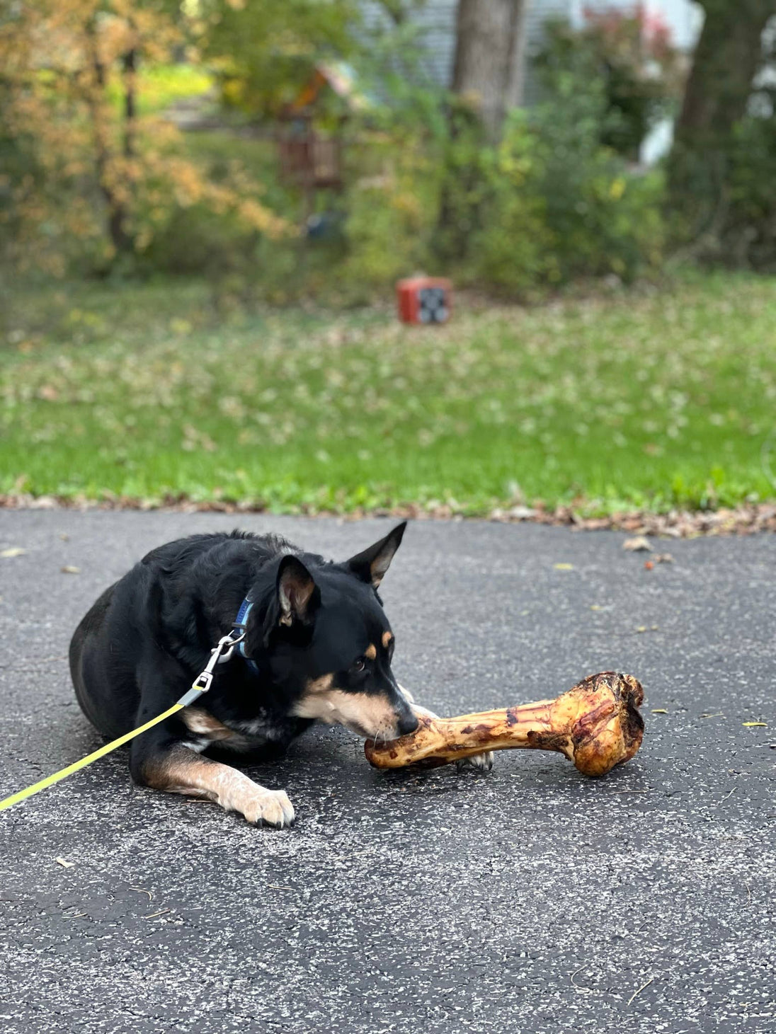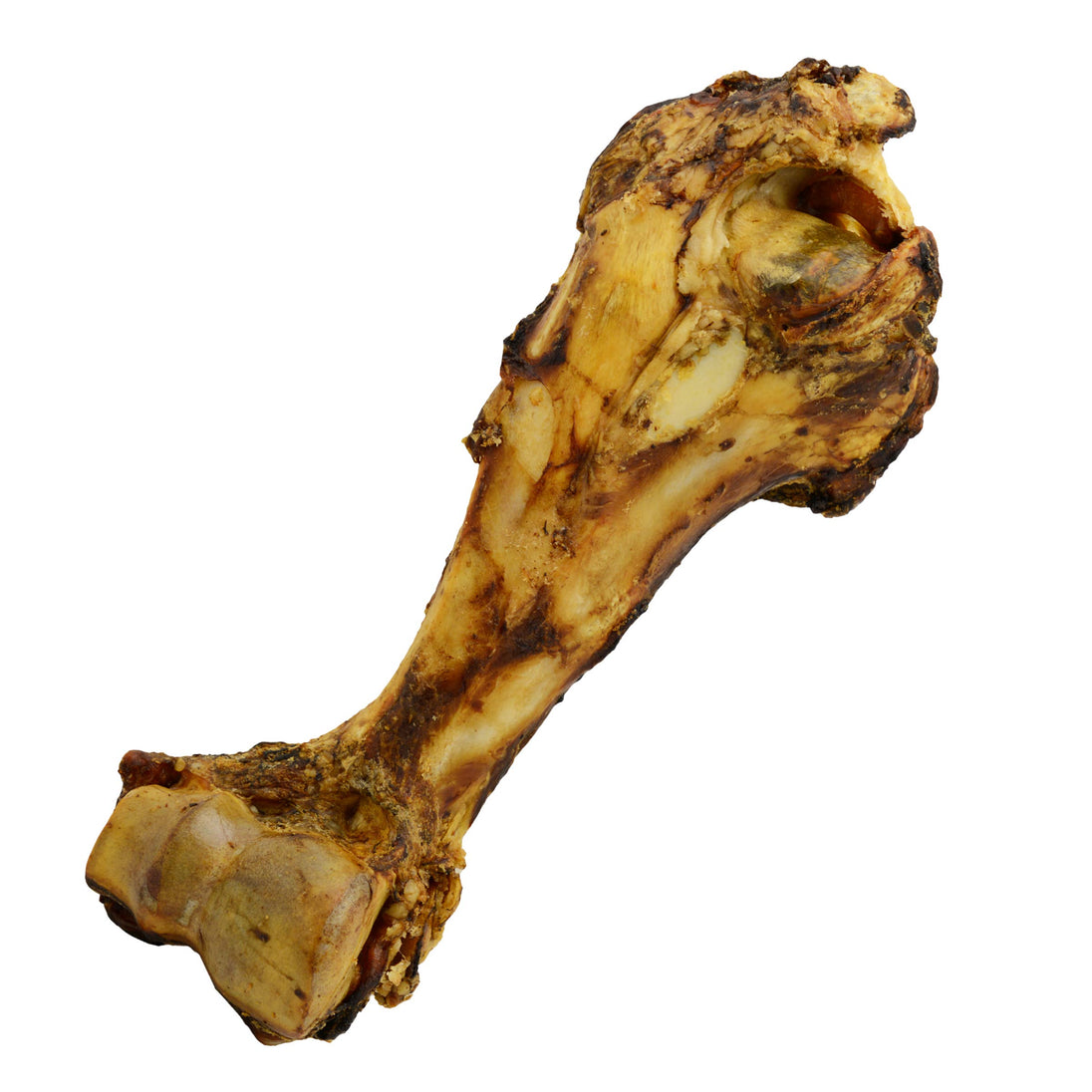 The Jones Natural Chews beef Dino Bone is a masterpiece of taste for your dog’s ultimate enjoyment. It is a whole USA-raised beef bone from the front leg reaching 12 – 14 inch long that is slowly-roasted to perfection with a hint of natural liquid smoke. With no artificial ingredients, this bone is best for medium to large dogs. This bone provides a long-lasting, tasty chewing experience, which will keep your dog coming back for more meaty tidbits that are delicious. This single ingredient, natural dog bone provides hours of tasty chewing entertainment. All Jones Natural Chews products are raised and handcrafted in the USA and responsibly sourced.