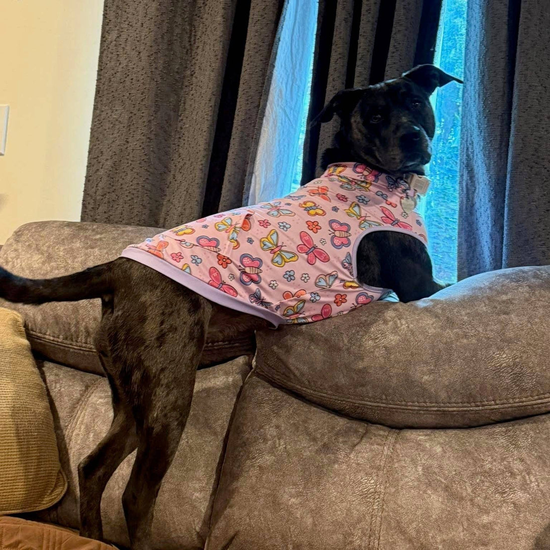At Pittie Clothing Co., we understand the unique needs of your bully breed. Our My Heart's A'Flutter Muscle Tee is a prime example of our commitment to providing fitting, fun, and functional apparel for your furry friend. This pet shirt is not only great for keeping your pup warm but also aids in surgery recovery and covering allergy hot spots. Plus, its adorable print helps in destigmatizing and celebrating the special personality of your pit bull type dogs. Dress your pet in our tee to make a bold and bright impression.