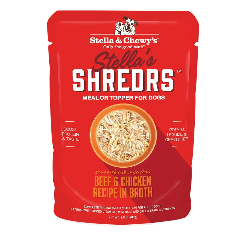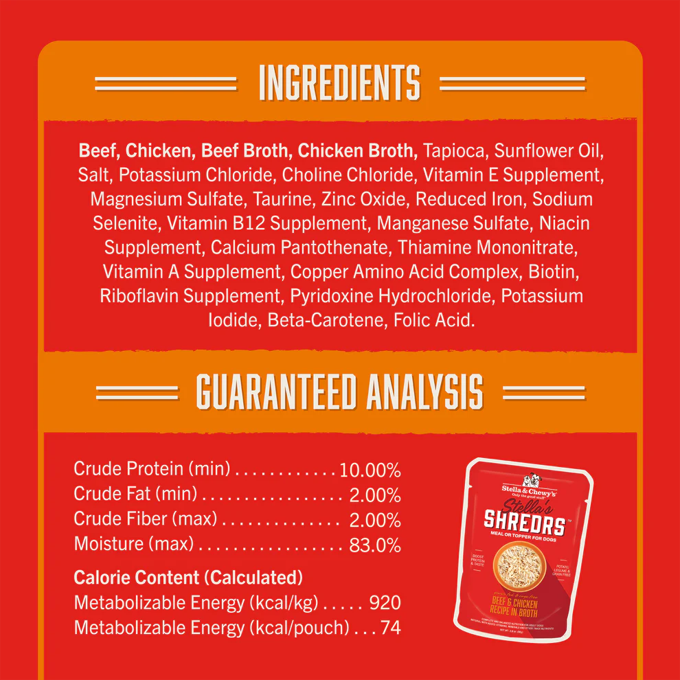 - Real shredded muscle meat and diced meat in a slowly simmered broth